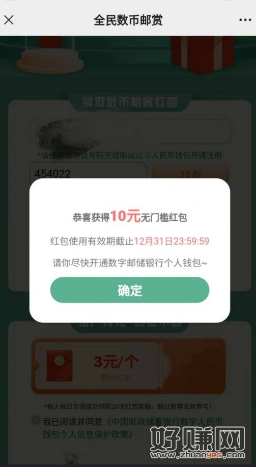 飞福州,领10邮储数币,需要以前没开过邮储数币的手机号,开过