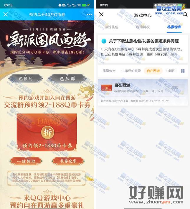 QQ预约自在西游领2Q币卡券 游戏上线后兑换