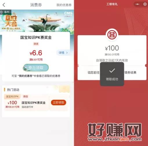 工行国宝PK,去工行APP搜索“工行消费季”领取立减金,天天