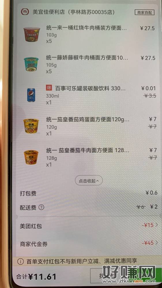 附近有美宜佳的快去吧,店铺首页领通用69-30+统一59-15凑单买泡面只要10几块钱,也有饮料可以凑单拍