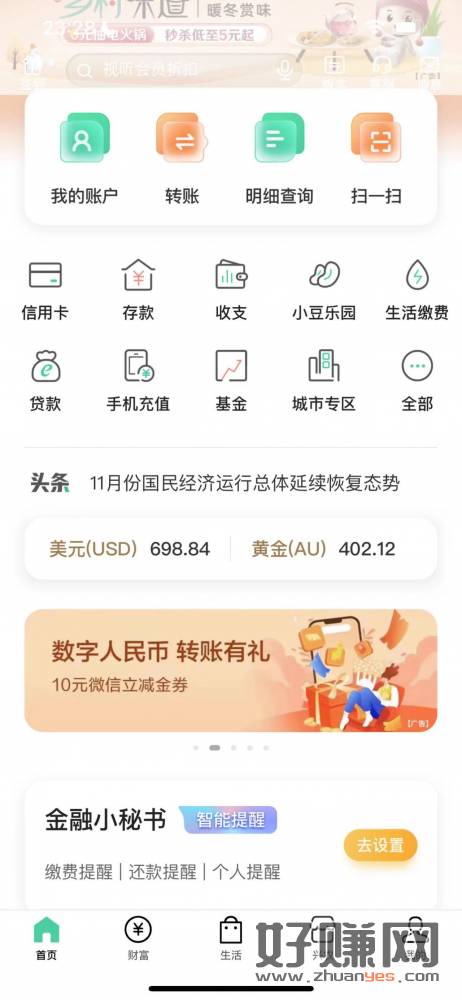 老农首页横幅,数字人民币转账有礼,转0.1到自己别的银行数字