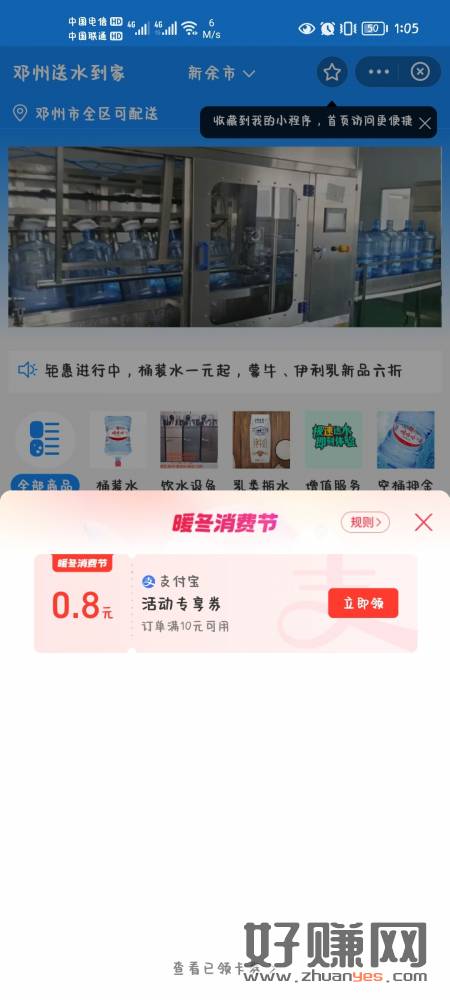 支付宝搜索邓州送水到家,暖冬专享券
