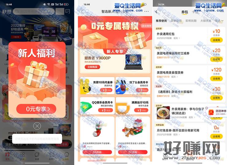 亲测3元购10元美团代金券/绿钻月卡 联想智选新户参与