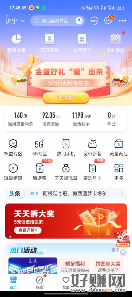 中国移动首页横幅“天天拆大奖”,貌似必中话费