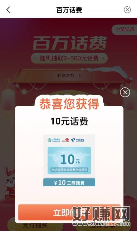 飞了之后链接太长我转码了,扫码进入活动支付6分然后抽奖最高500话费我是中了一个20一个10