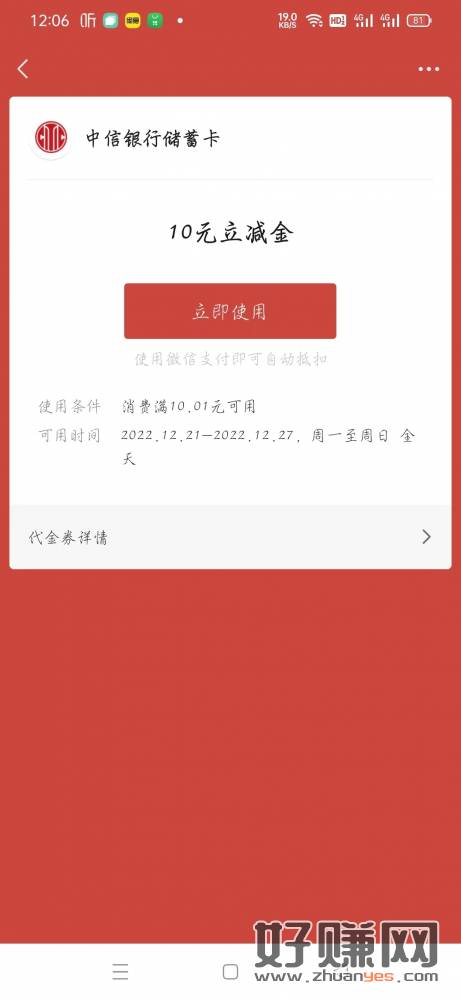[ 中信银行 ]每周一三五上午10点,10元微信立减金、爱奇艺月