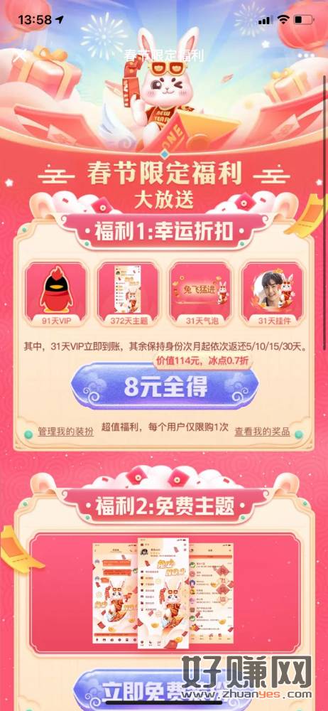 8元开通91天QQ会员,8元立即获得31天QQ会员,剩下每个