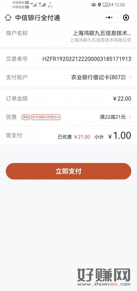 1买20话费,不一定要中信卡,绑定其他一类卡就行,出优惠再付