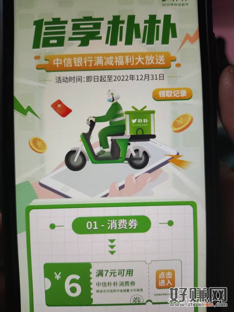 中信扫码领朴朴6元支付券,在朴朴app买8元礼品卡选微信中信