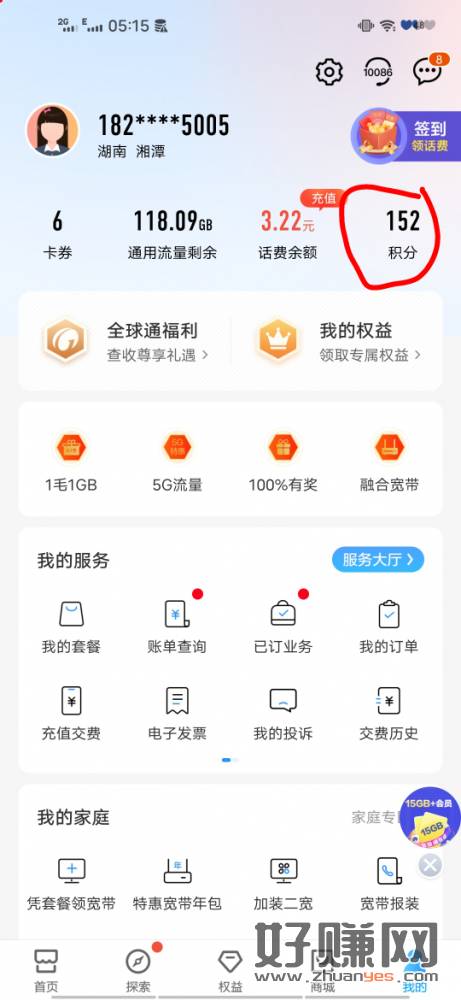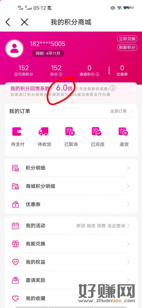 点我的积分 我的账户 去积分开启倍数 免费的 这样可以加倍 积分有什么用?这个积分500=5r话费