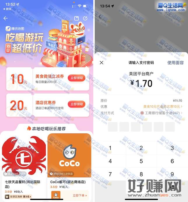 腾讯地图领10元美食微信立减券 可0.01元喝奶茶