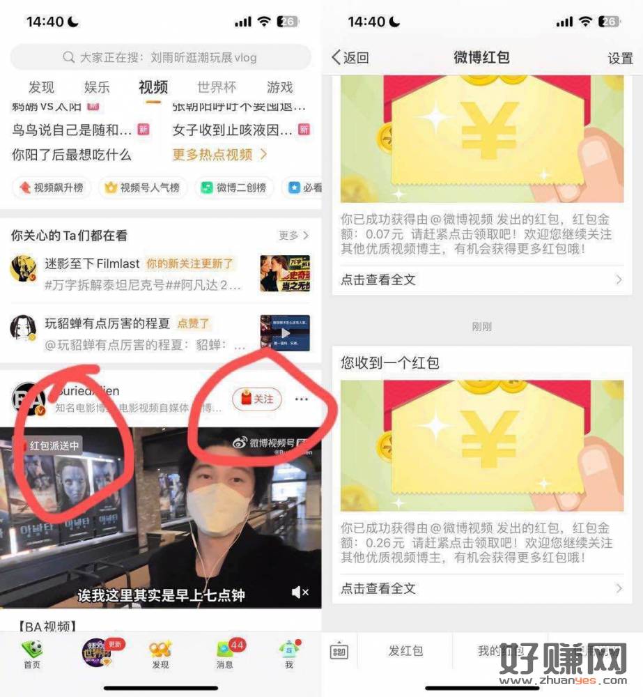 微博 发现-视频 有的视频关注有包 转发也有包 反复刷新即可