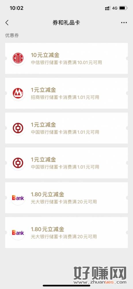 [ 中信银行 ]每周一三五上午10点,10元微信立减金、爱奇艺月
