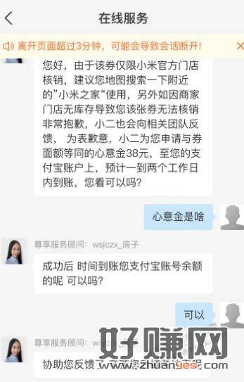 支付宝找客服说门店无货不开门,会补偿心意金