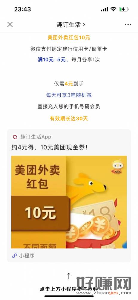 微信里找到趣订搜“限量美团”,点两下秒到手,还不错
