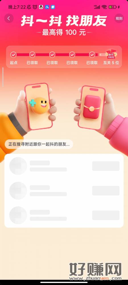 点进去刷视频的时候摇下手机就可以进入活动,应该有时间点,一样的看运气赚碰见,限时的来多少关注多少个,把关注的取关一些看看特邀概率有没有更高