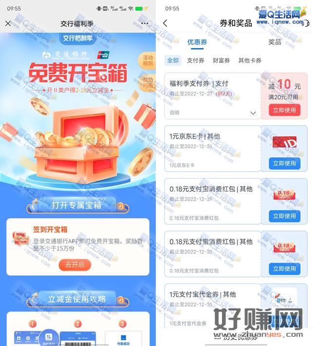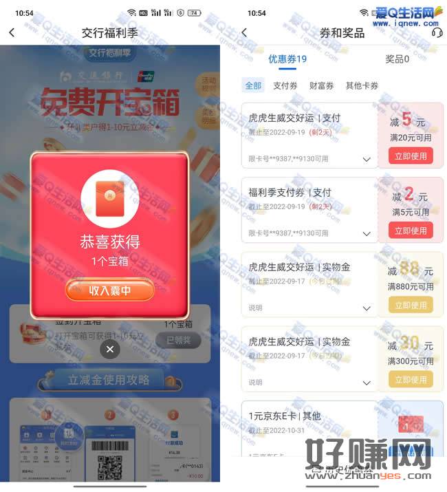 交行福利季开宝箱抽1-10元支付津贴 亲测2元秒到卡包