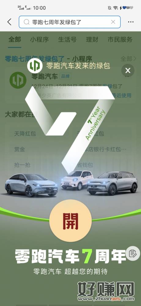 支付宝搜:零跑七周年发绿包了