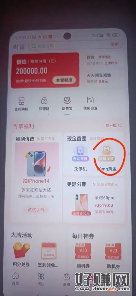 联通app -财富 这里领20mg黄金 要实名 没有就