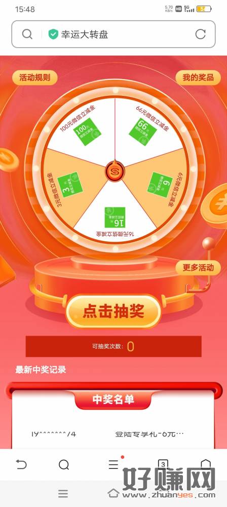 收到这个民生银行信息的去,最低3立减金。我运气有点背只抽了3