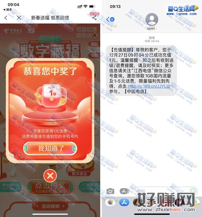 进入活动就有一次抽奖机会,亲测中1元话费秒到