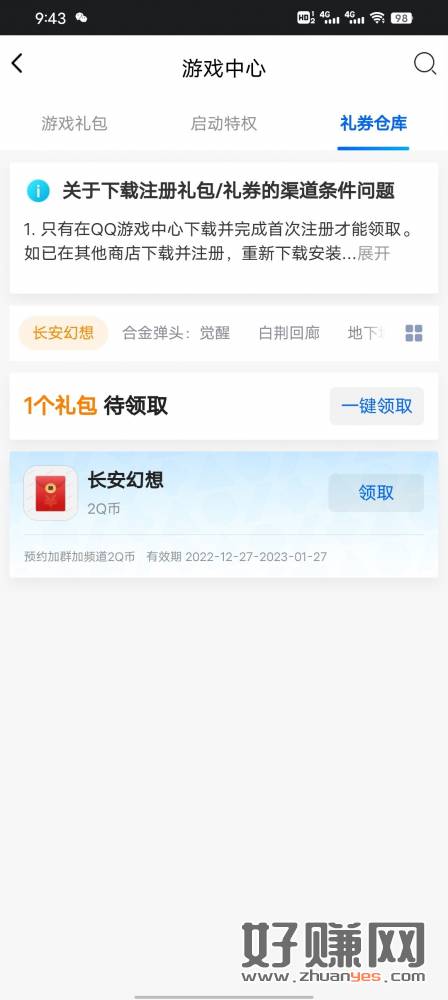 QQ搜索游戏中心 游戏中心搜索 长安幻想 之前预约了两个Q币下载游戏也可以拿了 这个不会没 去吧