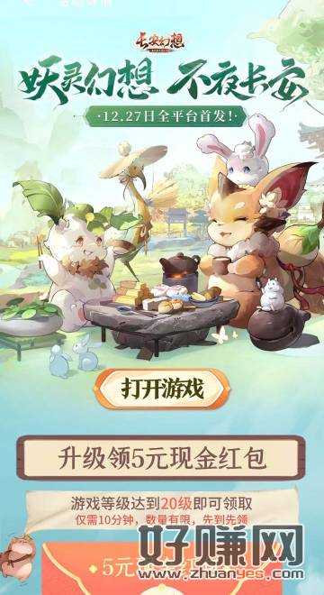 OPPO游戏中心长安幻想,刚试了一下,估计有bug,我都没有升到20级,5元直接领到支付宝了。