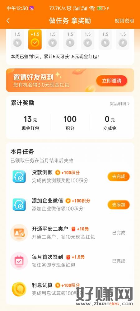 平安数字口袋APP,下载登陆首页点签到有礼,每天签到都有1.