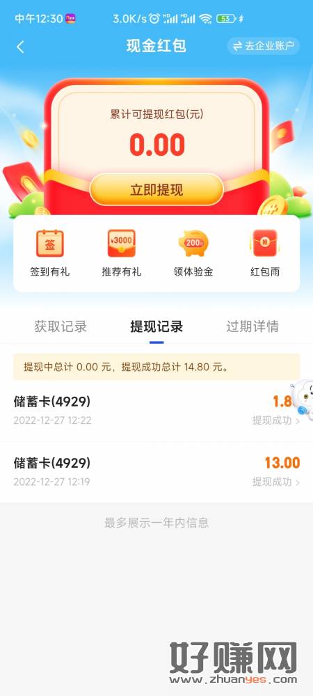 每天红包雨和浏览任务分享任务刷新 换立减金需要下载app