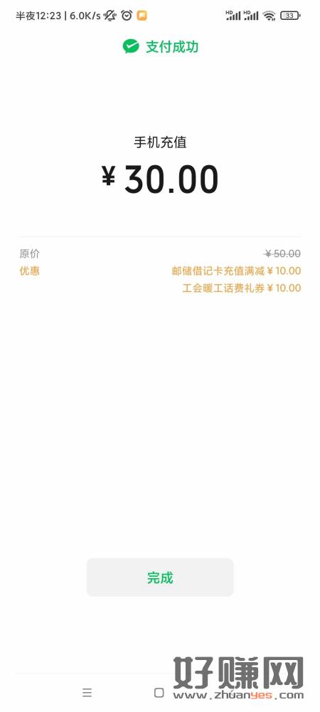 微信充话费 邮政卡支付减10元 秒到可以去接单平台8利润也可以自己用!这个活动晚上出来,白天就没有