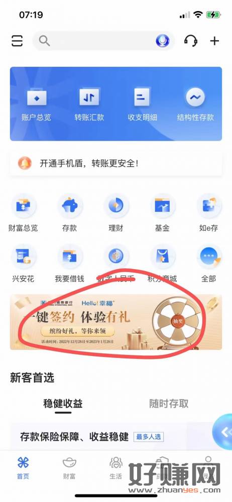 厦门国际银行,首页一键签约,完成简单的任务,领取e卡