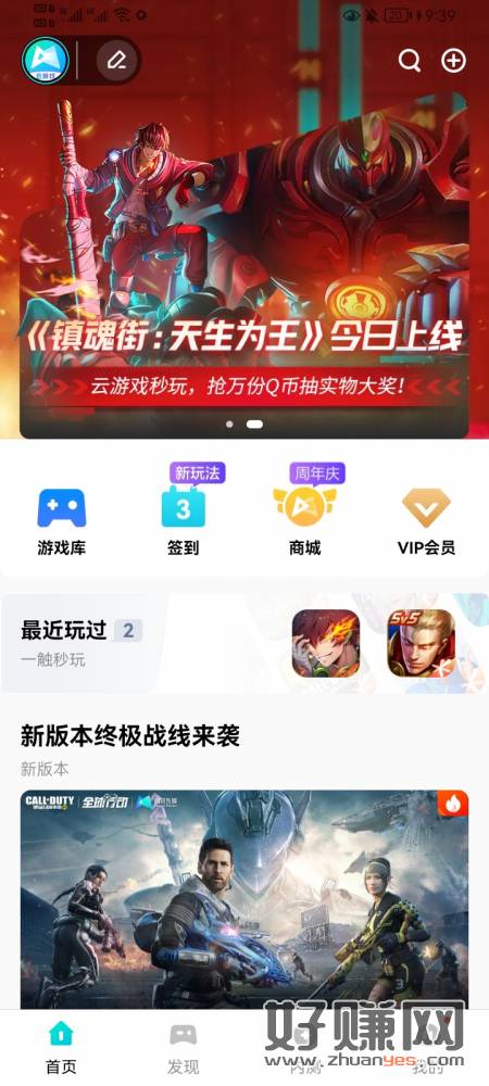 腾讯先锋APP-首页顶部滚动横幅【镇魂街:天生为王】进入-点击云游戏秒玩,使用QQ授权登陆即可
