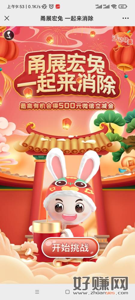 然后微信关注“农行宁波分行微银行”甬展宏兔 有次游戏机会,然后分享给文件传输一次 共三次机会 抽微立减金最高500……!