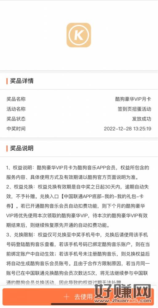 联通APP扫码->每天有3次机会->抽中会员在“联通APP-我的-我的礼包-卡券”中激活