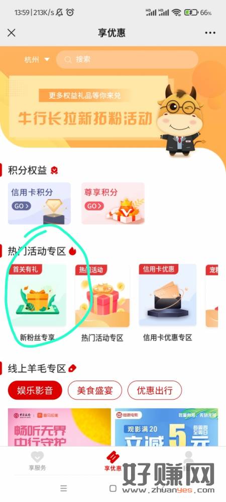 公众号:中国银行浙江分行 享优惠 首关有礼 抽立减金 不限卡
