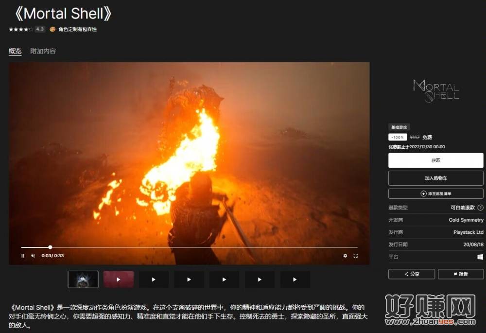 Epic平台免费+1< Mortal Shell >是一款深度动