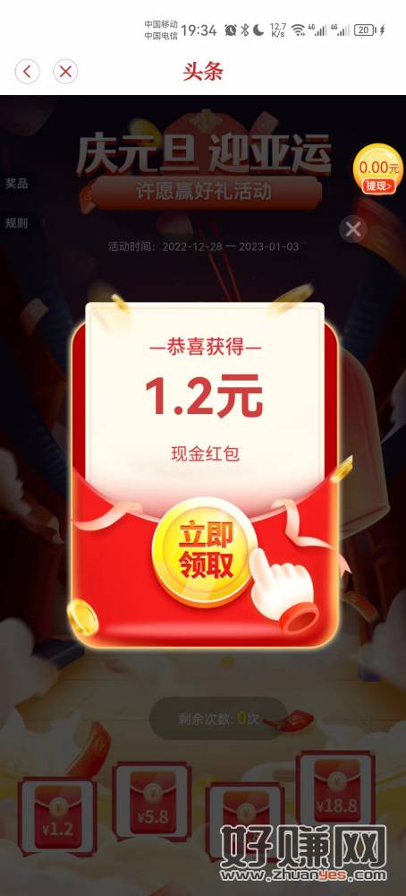 笛杨新闻app 首页元旦活动抽奖必中1.2