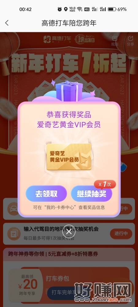 高德打车☞打车☞右侧中间新年快乐抽奖,刚中!