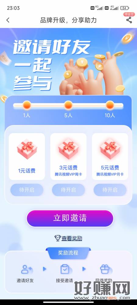 (非邀请贴)[ 拉10个人点亮5话费+一张腾讯月卡 ]电信app