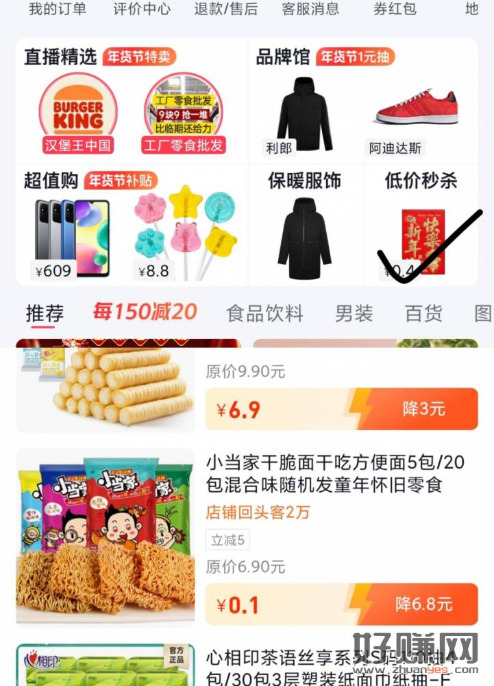 进去后部分号弹5券,一些商品拍下0.1