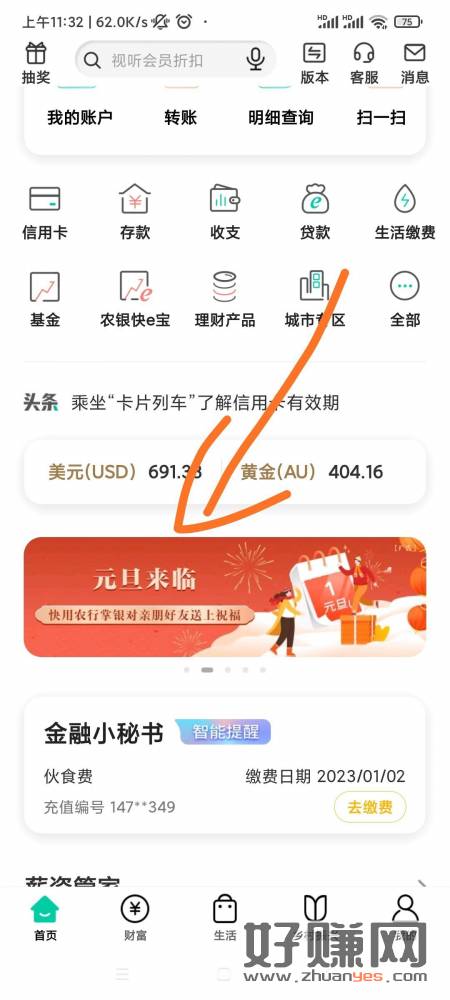 农行首页——元旦来临看图——给自己账户转账0.01然后——再去任务中心抽奖 100话费,不是必中!