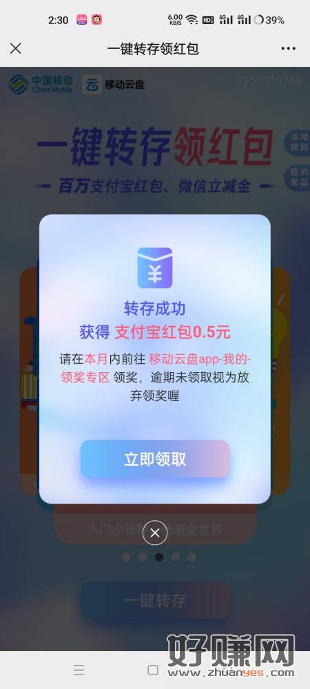 zfb抽中这个的抽中余额宝转入88红包的,他让转入多少就转必