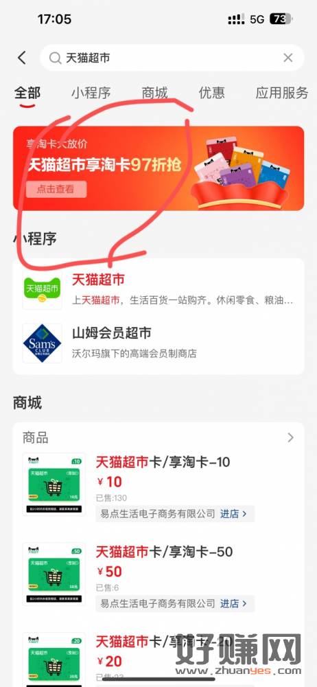 47元猫超卡教程!云闪付搜索天猫超市,0.4买这四个得47品