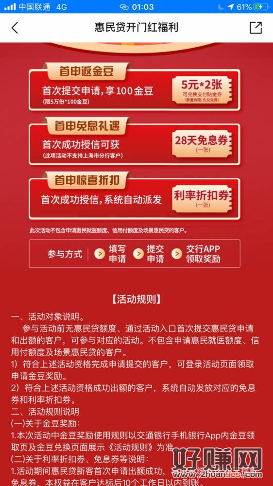 速度!交通银行惠民贷更新,入口如下图,领100金豆兑换两张5