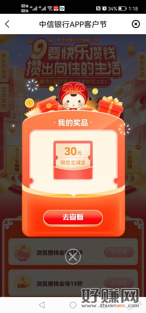 中信搜客户节,下面的集卡,集完得30立减金,来点果果吧