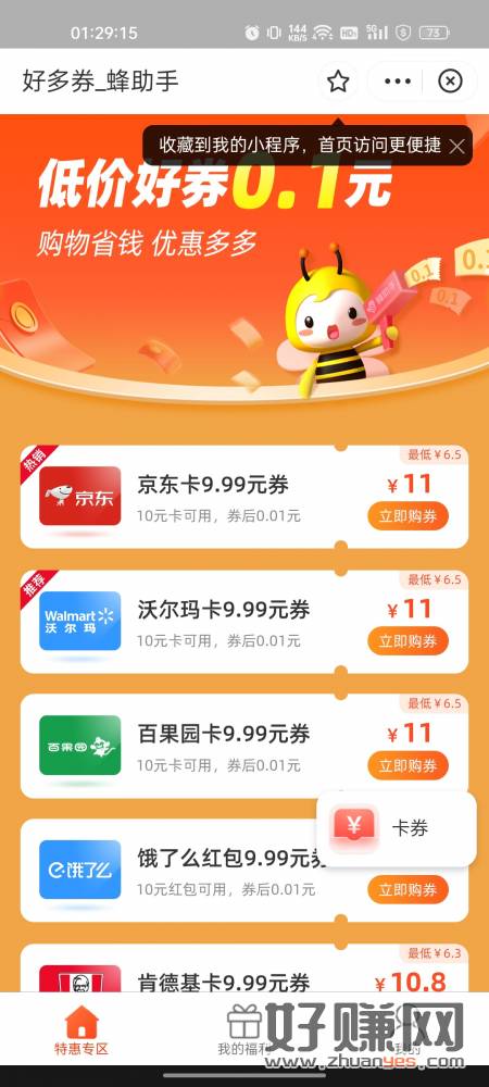 没破零的去搞搞蜂助手吧,支付宝搜好多券,两块以上的券加0.5