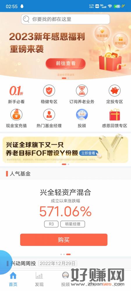兴证基金APP,首页横幅感恩福利,刚又中1.8