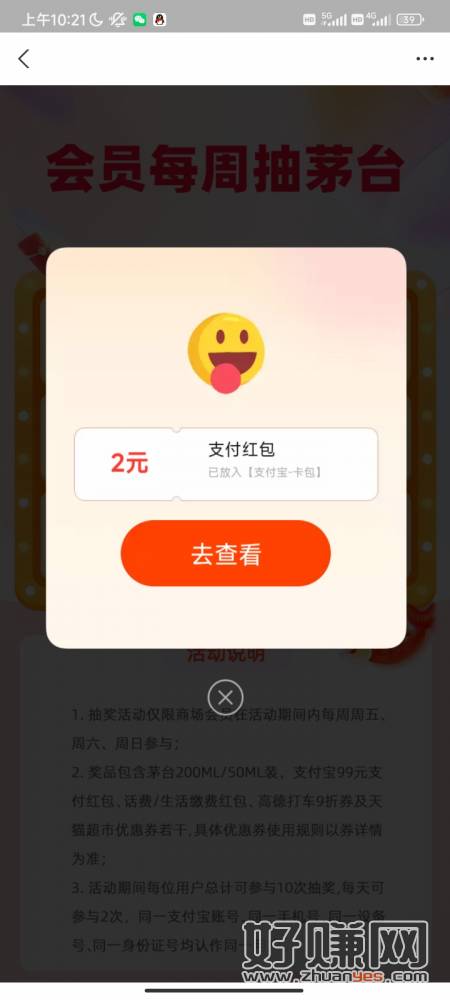 支付宝扫码先点右下会员卡入会,然后再点首页上面横幅进去抽,每天2次机会,刚中