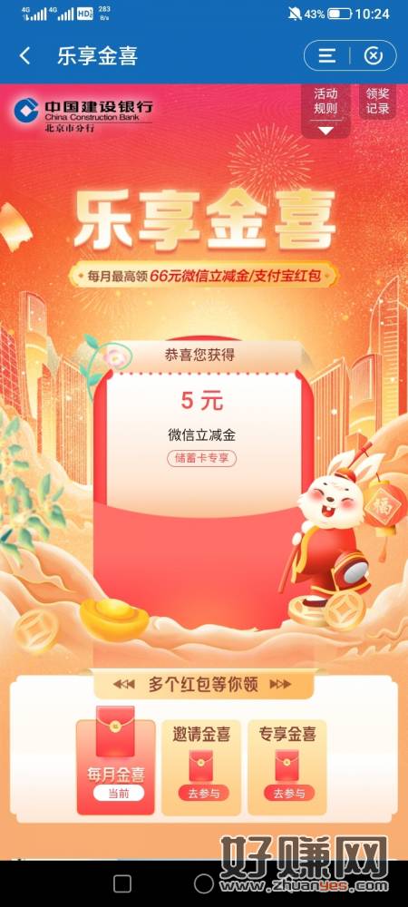 建行北京,搜乐享金喜,付1分领立减金