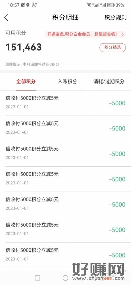 信收付里面5000积分兑5块钱,好像不止能付5次